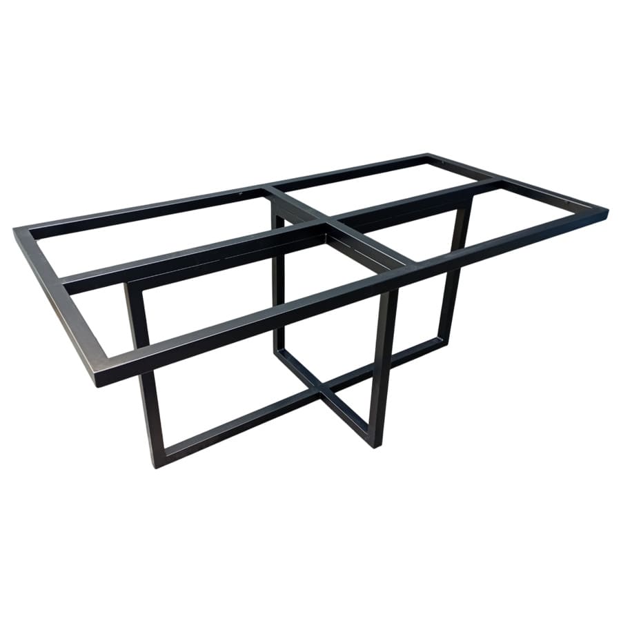 Construída com barras de metalon largas e soldas robustas, suporta peso intenso sem deformações. Seu design inteligente permite a montagem de tampos em diferentes materiais, tornando-a uma solução versátil para quem busca durabilidade e estética industrial. Por exemplo, madeira, granito, MDF, vidro etc.